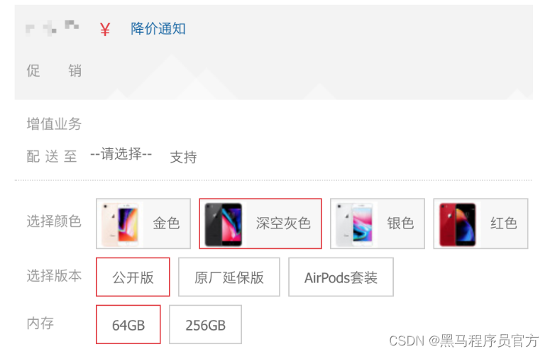 iPhone X 全网通 黑色 256G就是一个 SKU ,表示了具体的规格、颜色等信息。