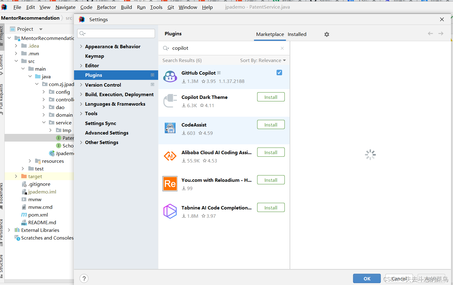 首先要确保idea版本必须在2021.2及更高,否则是无法搜索到copilot插件的