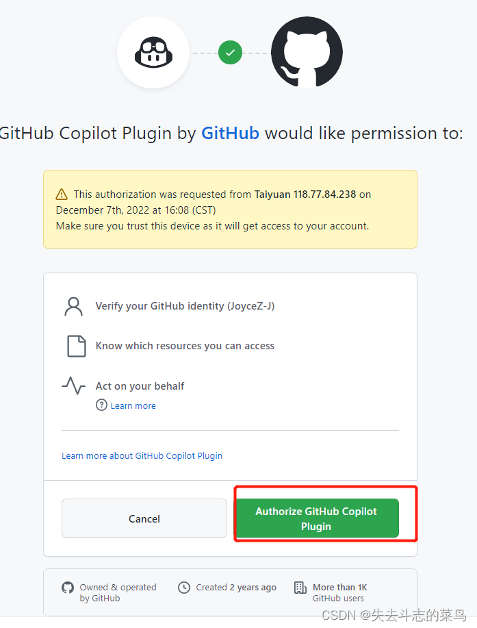 输入完成后点击进入授权页(要保证当前你的github账号已经成功申请到了资格)