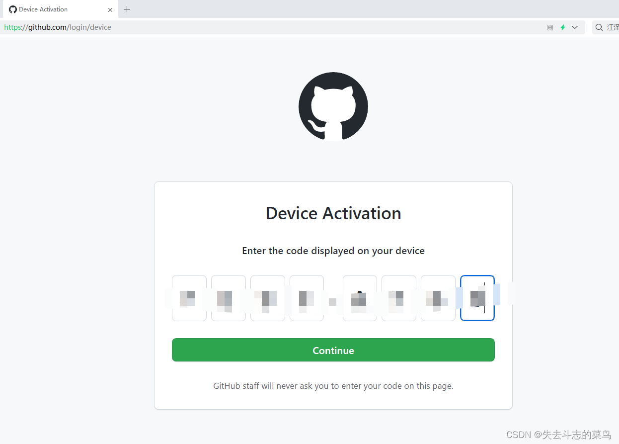 然后输入你的设备码(应该已经自动复制好了,直接粘贴就可以)。