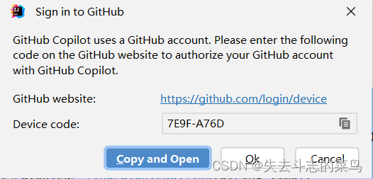 可以看到你的设备code,点击Copy and Open【这步忘了截图了】
