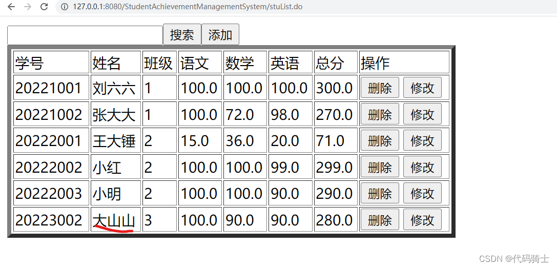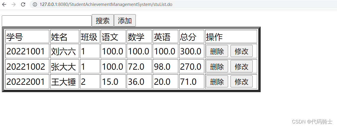 【JavaWeb开发-Servlet】day05-学生成绩管理系统-实现添加、删除、修改、查询功能