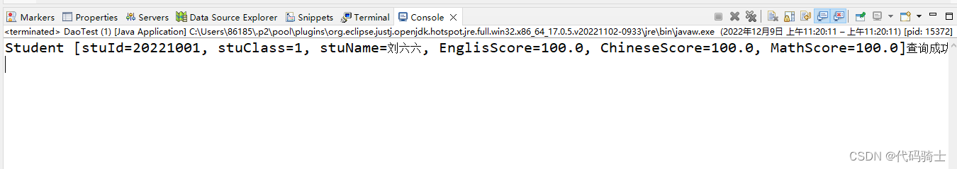 - dao层根据学号查询学生成绩信息:语文、数学、英语、总分的分数。