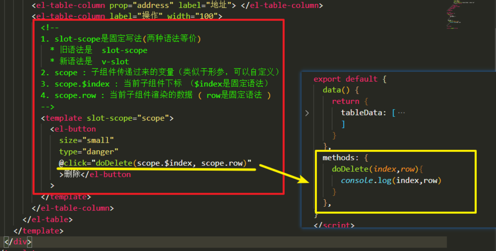 scope.row 在scope下面, 一般是代表:data数组中的当前项数据
