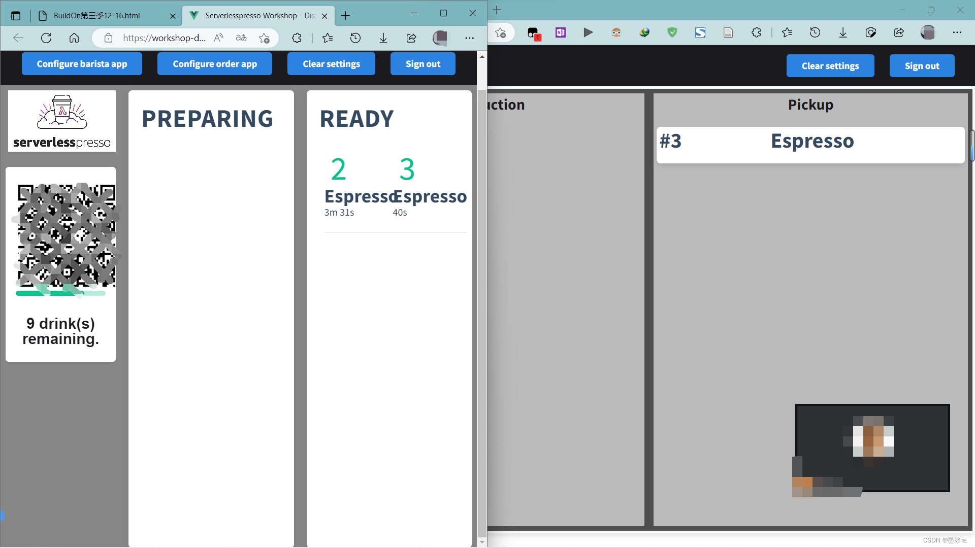 - 显示应用程序:这显示在头顶监视器上。它提供条形码供客户扫描下订单,并显示即将到来和已完成的饮料订单的实时队列。