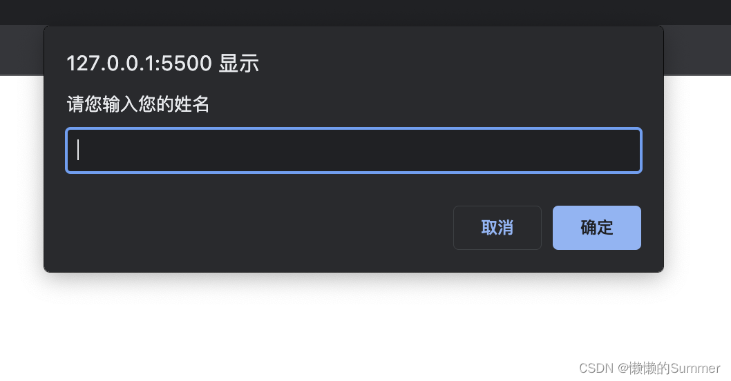 用于弹出显示可提示用户进行输入的对话框,方法返回用户输入的字串符。(可选项):需要在对话框中显示的纯文本(不是HTML格式的文本)。(可选项):默认的输入文本,可以不写,也可以为空。