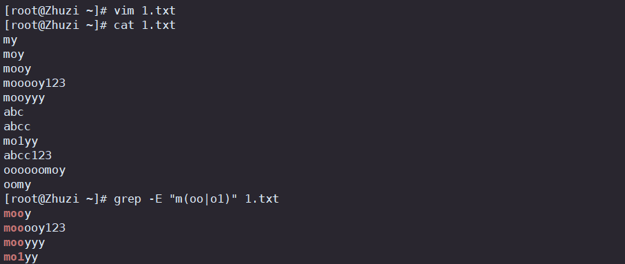 | | | 以或的方式匹配字符串 |