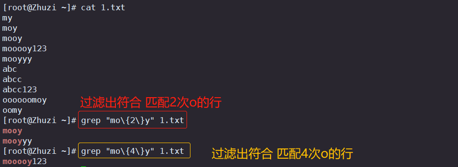| 注: egrep(grep-E)、awk使用{n }、{n, }、{n,m}匹配时"{}”前不用加"\" | |