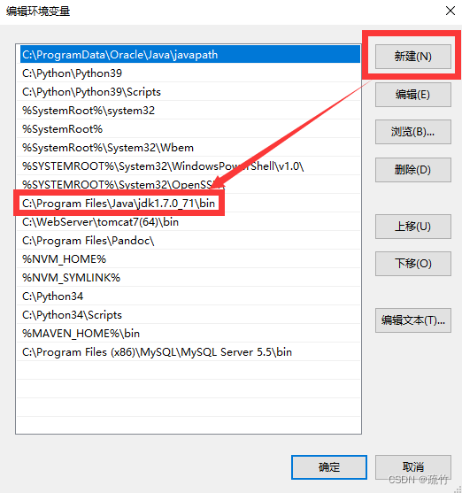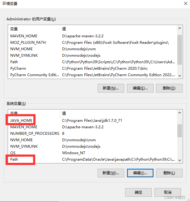 Path环境变量配置:双击Path环境变量或选中Path,点击编辑。
