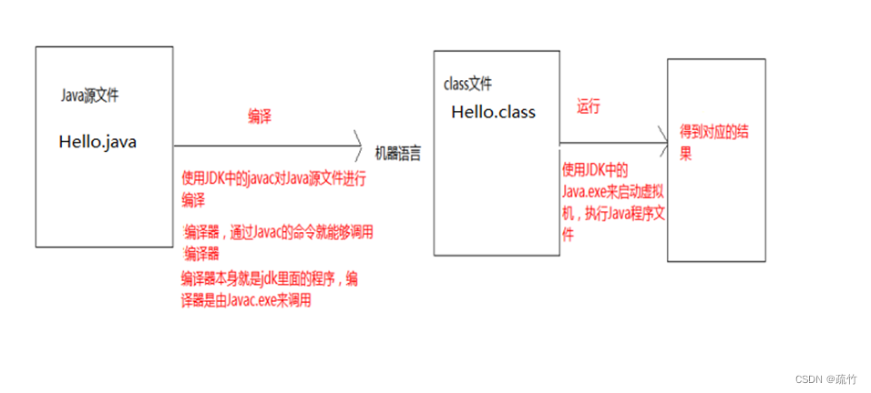 第三步: .java文件叫做源文件。源文件就是用Java语言的形式写了一个程序文件,这个文件是不能够运行的。必须将.java文件编译成.class文件,才能在JVM上运行。此阶段称为编译。步骤如下