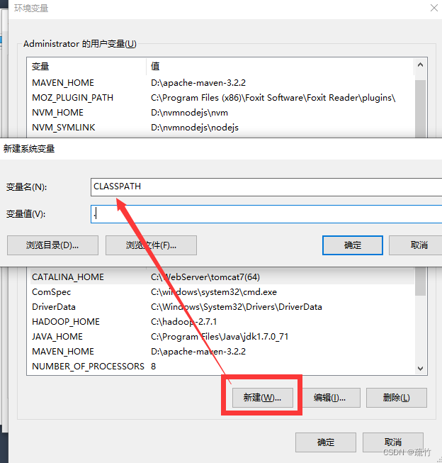 CLASSPATH:点击新建,在弹出的对话框,输入对应信息。