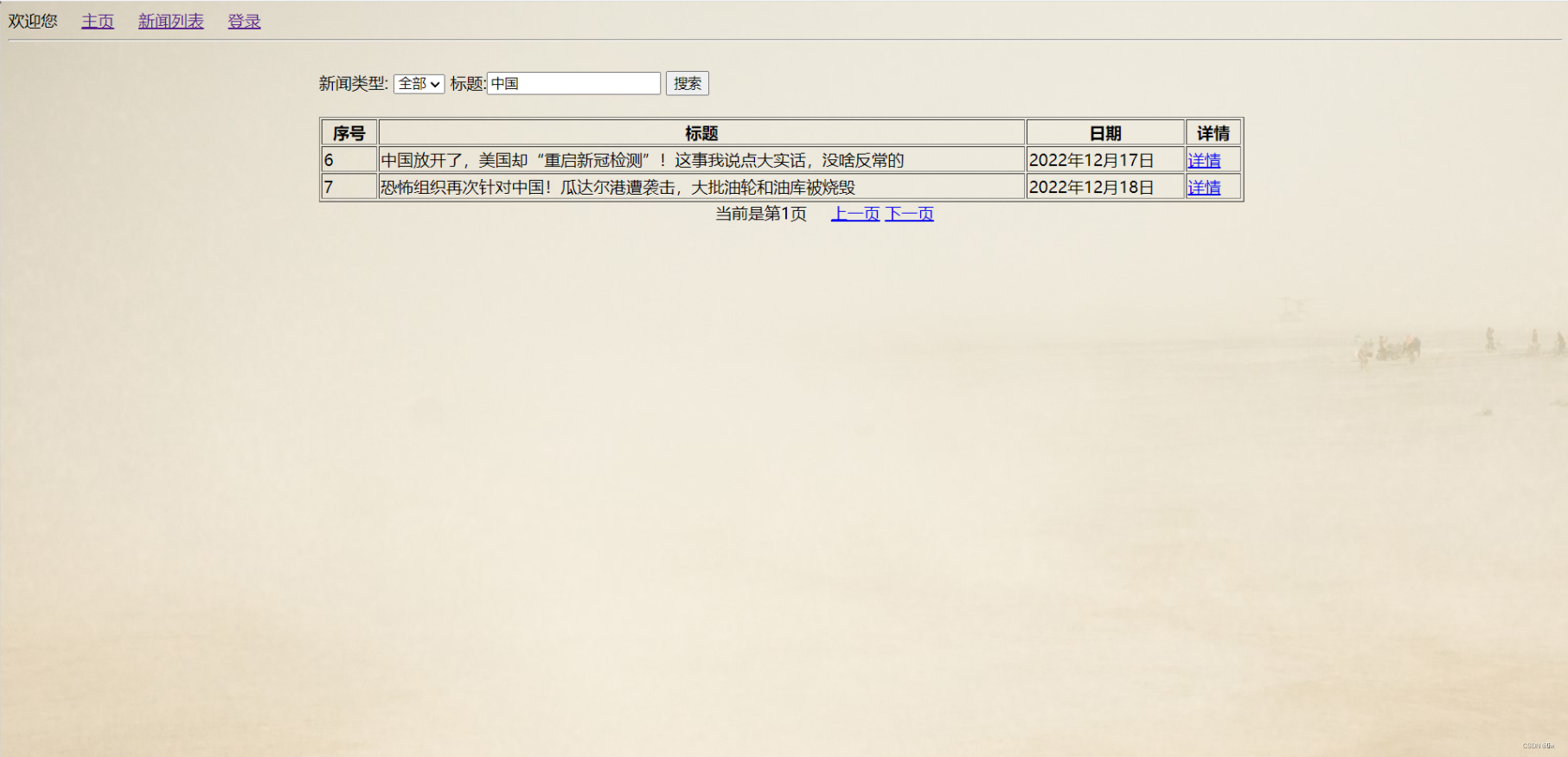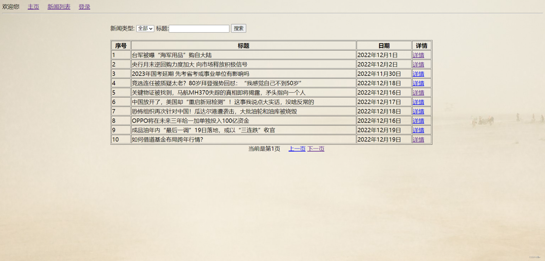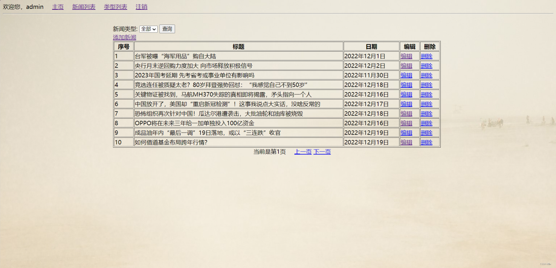 (3)根据新闻类型对新闻进行查找
