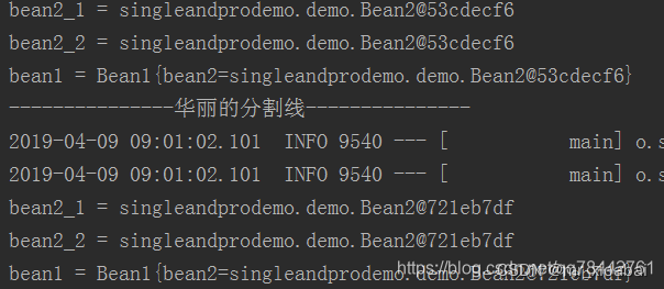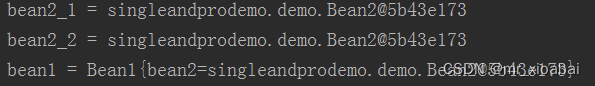 这里要注意bean1没有填写scope,这里没填的默认是scope为singleton