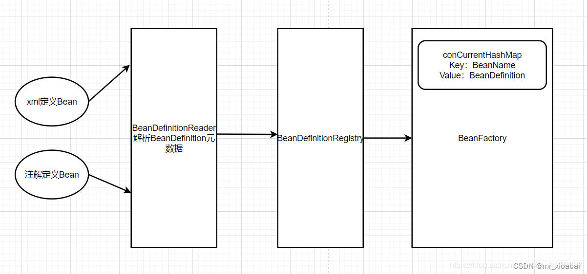在介绍BeanFactory前,我们先想一个问题。我们都知道BeanFactory主要的内容是帮我们生成Bean信息和管理Bean信息,那么我们在xml文件中<baen>属性的时候。Spring是如何帮我们生成Bean.