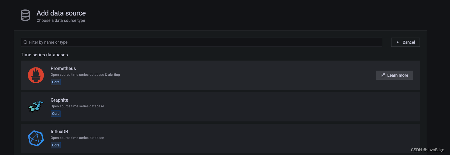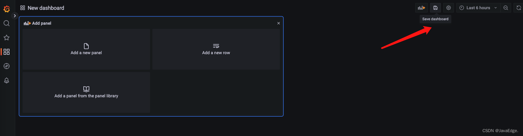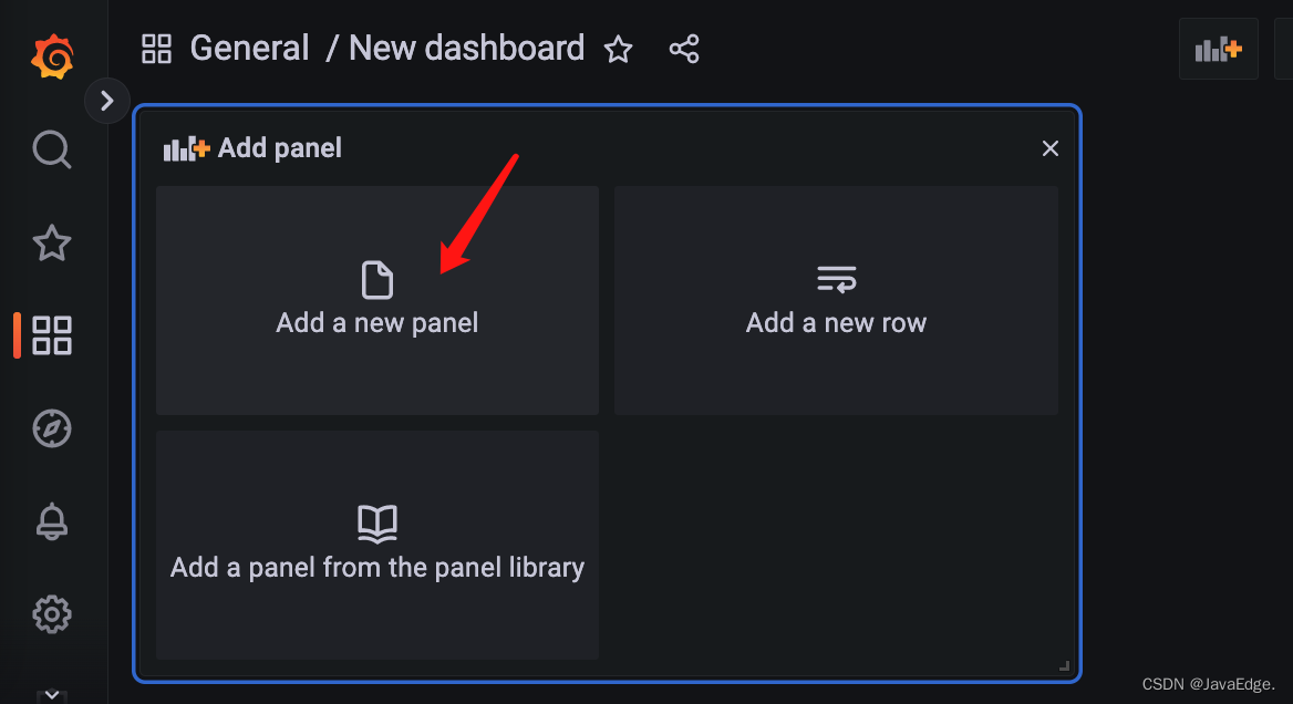 点击Add panel图标,点击Graph图标添加一个Graph: