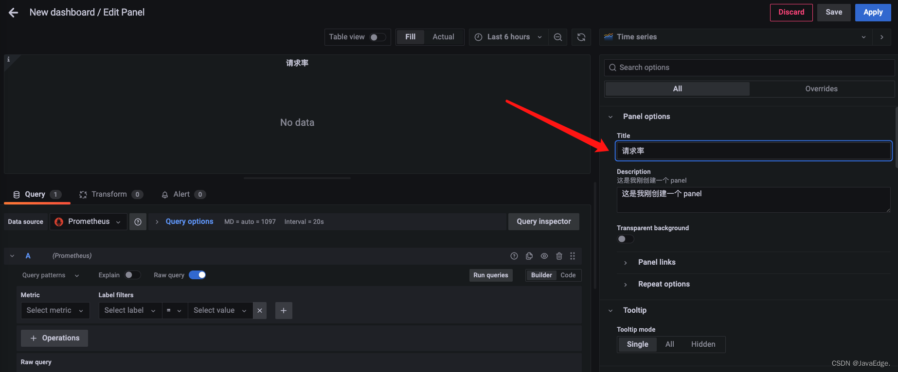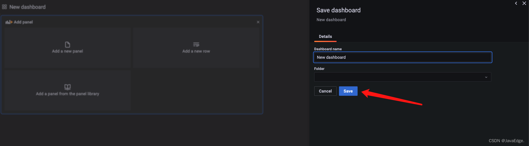 使用缺省Folder,给Dashboard起名为prom-demo: