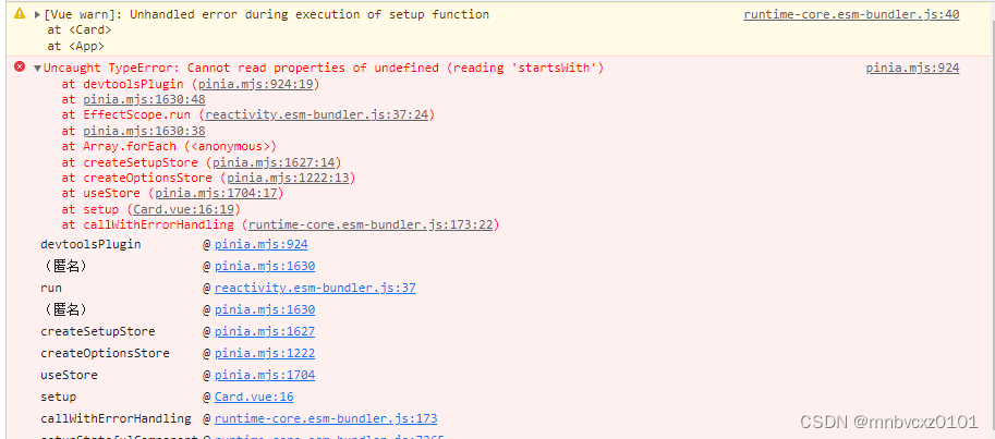 遇到bug,写pinia时:Cannot read properties of undefined (reading ‘startsWith‘)
