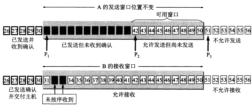 ACK=1,ack=u+1,seq=v),B进入CLOSE-WAIT(关闭等待)状态,此时的TCP处于半关闭状态,A到B的连接释放。 - A收到B的确认后,进入