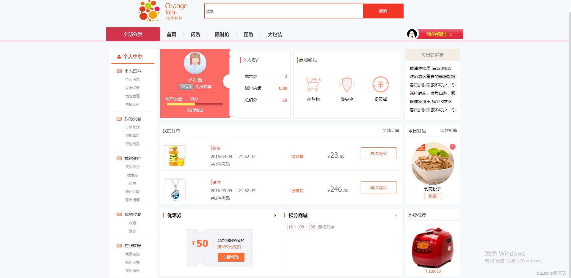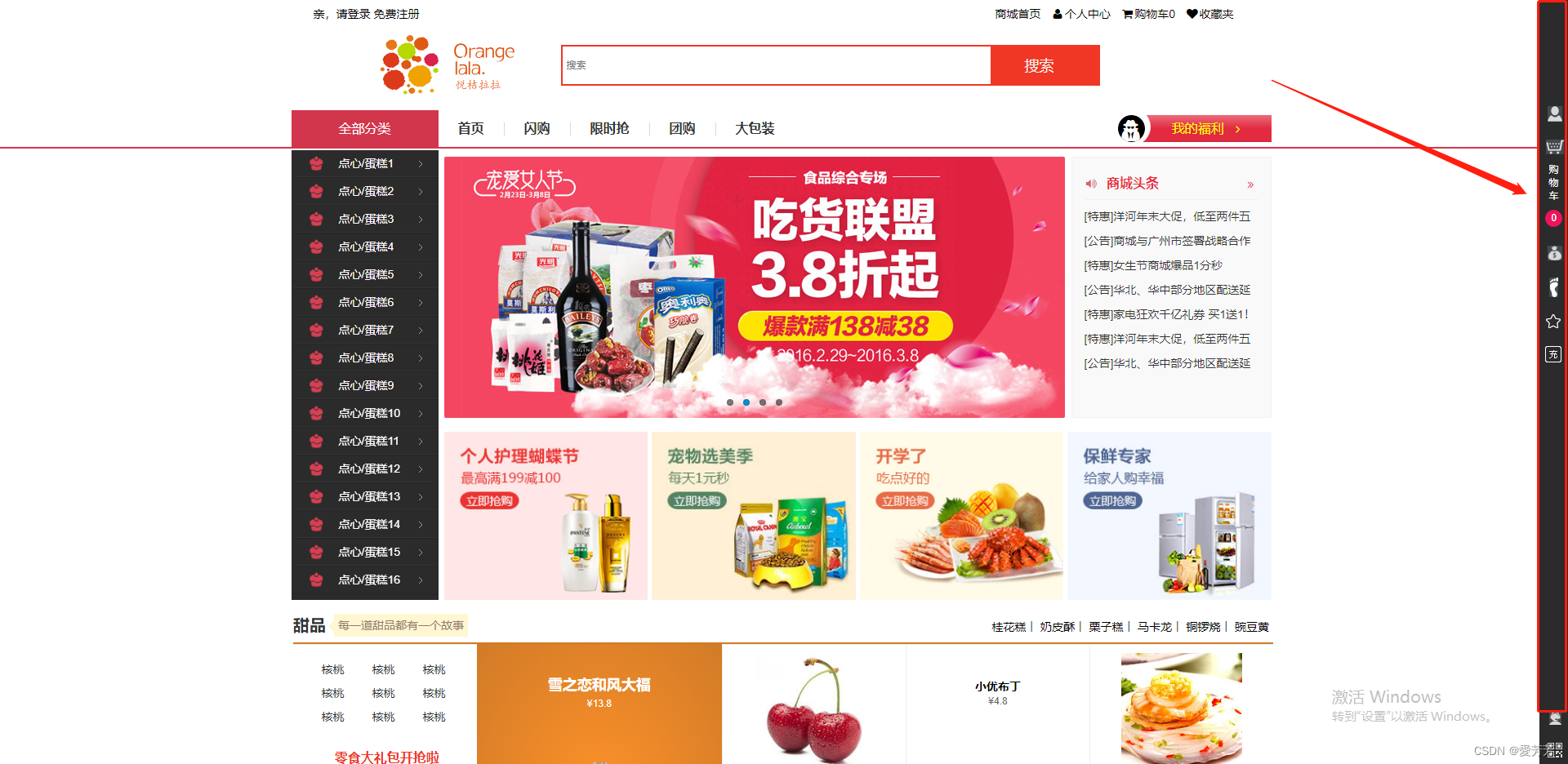 vue实现功能完整的购物商城,商品零食、电商通用商城