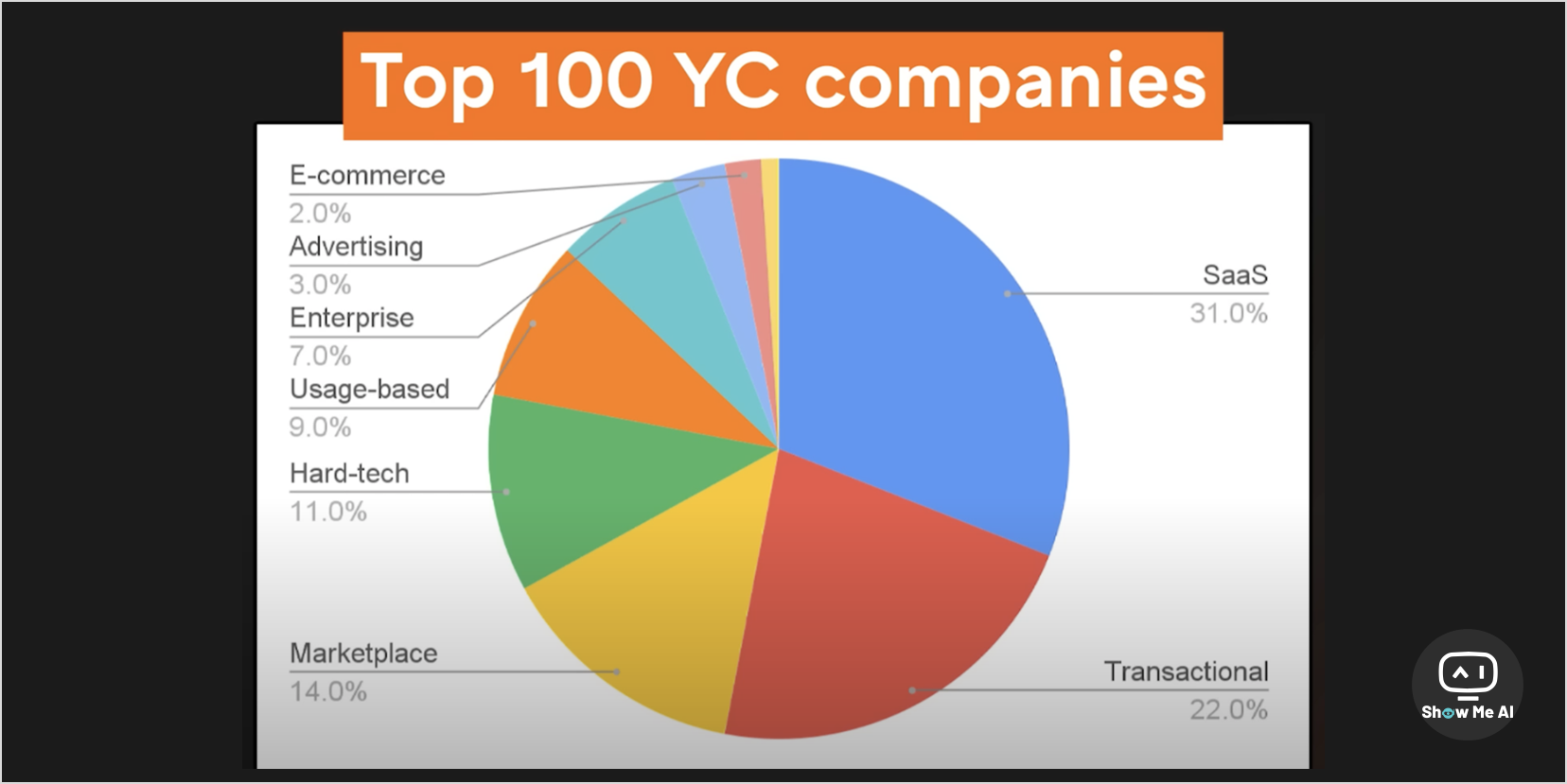 YC 合伙人 Aaron 在投资4000多家初创企业后,总结了9种商业模式:SaaS、交易市场 Transactional、市场业务 Marketplace、硬件技术 Hard-tech、基于用户使用量 Usage-based、To B 企业 Enterprise、广告业务 Advertising、电子商务 E-Commerce、生物 Bio。
