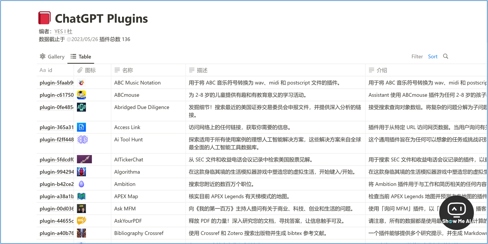 截止5月26日,ChatGPT Plugins 已经有136个插件了,编者 @YES I 杜 将其总结成为一个详细的文档,包含了插件的id、名称、描述、介绍、链接等信息 ⋙ 文档链接