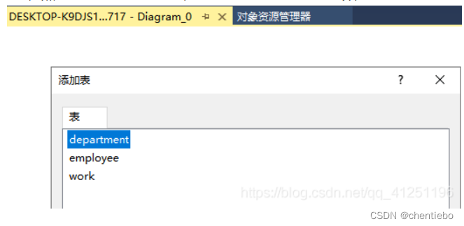 首先在work表中对于两个字段,employee和department都建立了外键,然后想看一下数据库关系图,报错:索引超出了数组界限。测试了其他的数据库是可以正常创建数据库关系图的。