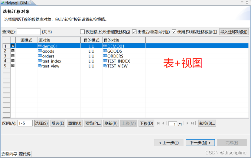 MySQL 的体系架构是单实例多库,DM7 以上的版本是单库多实例的架构, MySQL 可能是一个 root 用户访问多个库,访问前切换一下当前库即可。从MySQL 迁移到达梦的时候就需要针对 MySQL 中的每一个库在达梦里面创建一个用户和表空间来对应。例如 MySQL 中有一个库 test,达梦里面先创建一个表空间 tab_test,然后创建一个用户 test,指定默认表空间为 tab_test。迁移 MySQL 中 test 库的数据的时候,用 root 用户连接 MySQL,指定当前库为 test;用 test 用户连接达梦,这样就把 MySQLtest 库中的数据迁移到了达梦test 用户中。