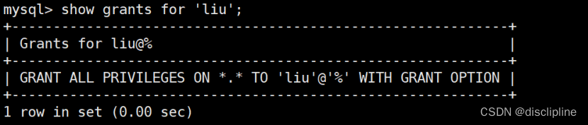 mysql> show grants for 'liu';