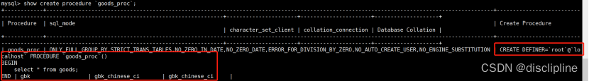 Mysql:SHOW CREATE procedure `goods_proc`
