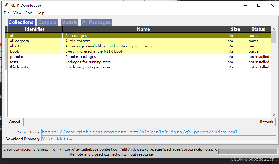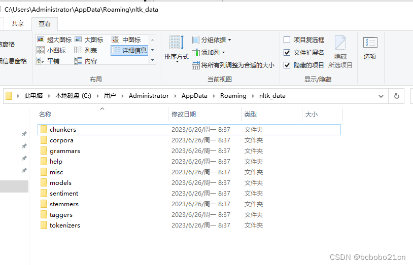 根据资料单独下载一份nltk_data-gh-pages.zip,解压以后拷贝packages目录下的所有内容到如下目录;