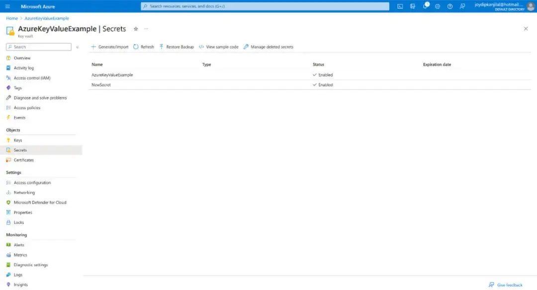然后可以在Azure门户中查看到新创建的秘密,如下图所示