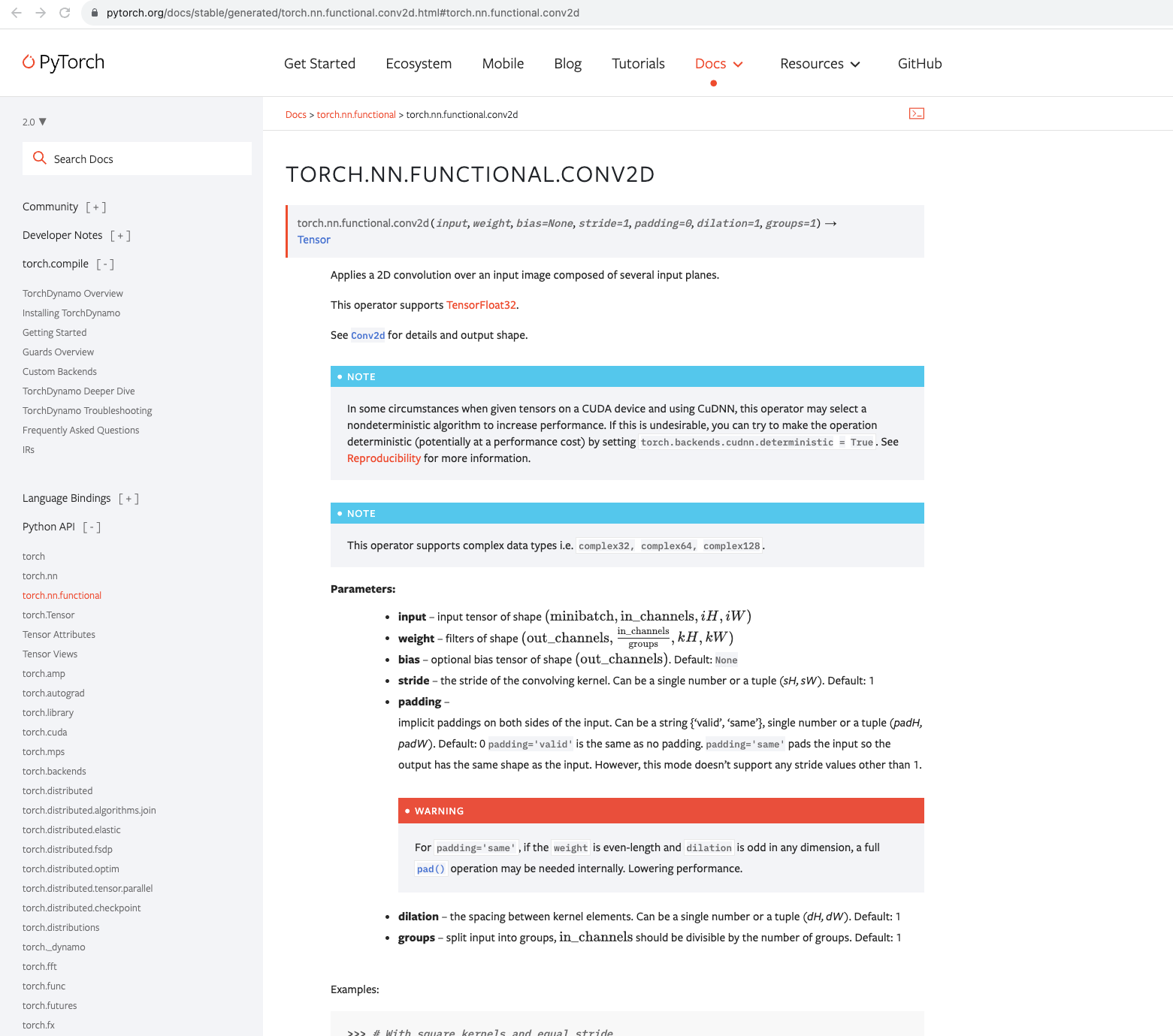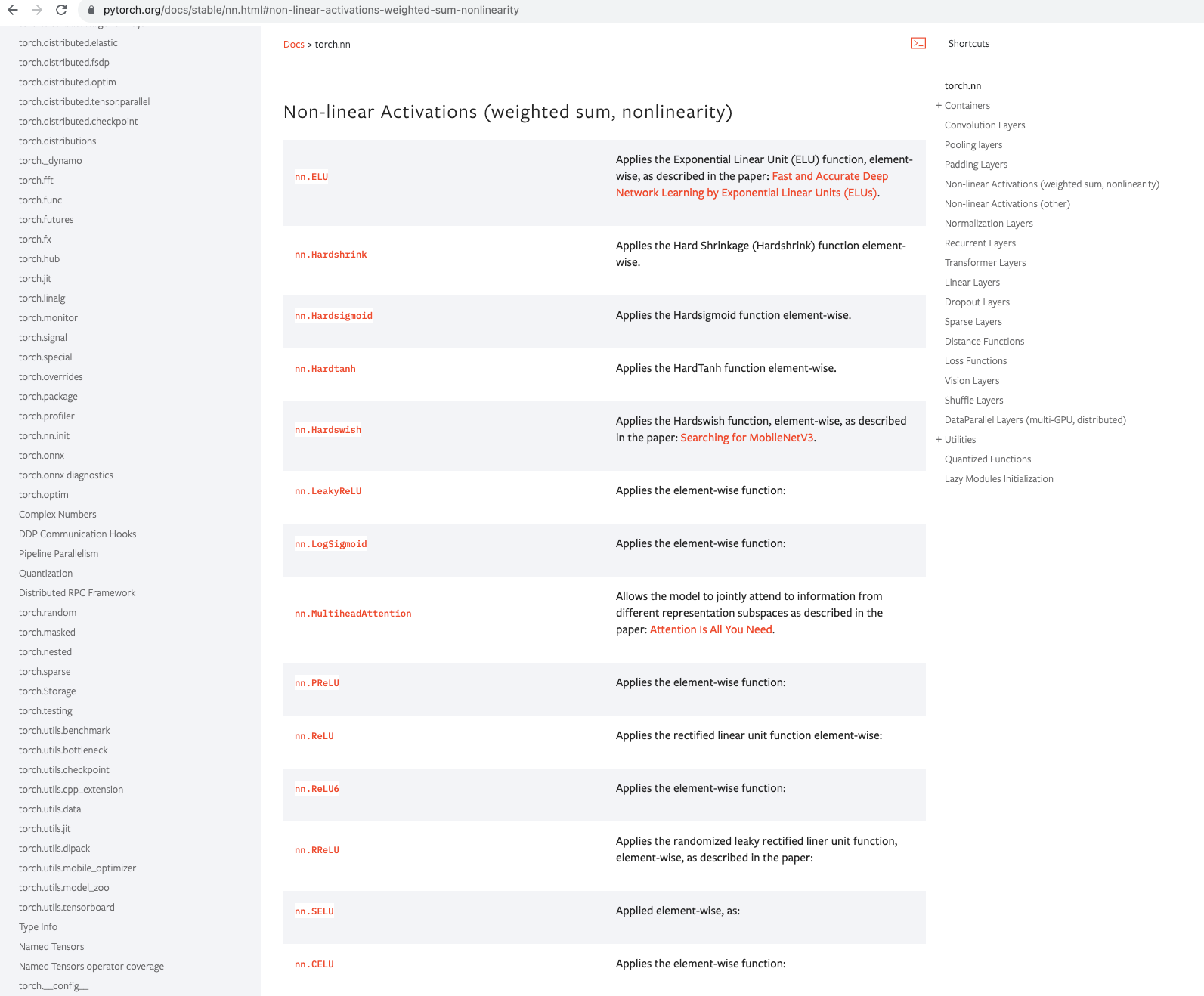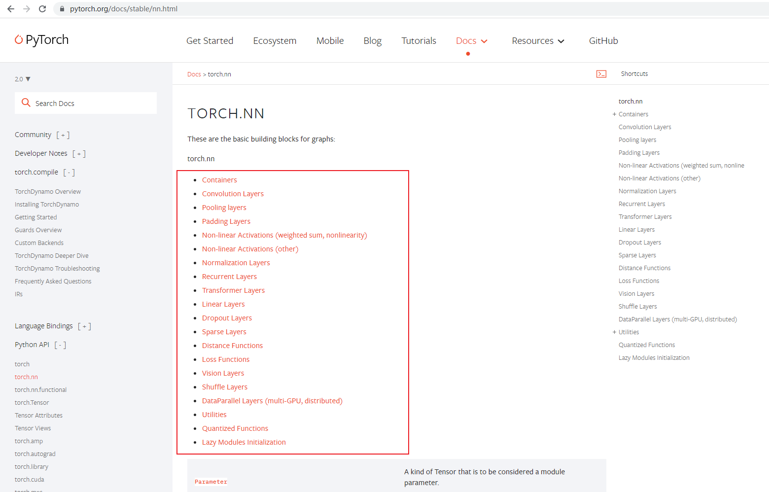 查看pytorch的官方文档可以看到,神经网络中不同层及其使用