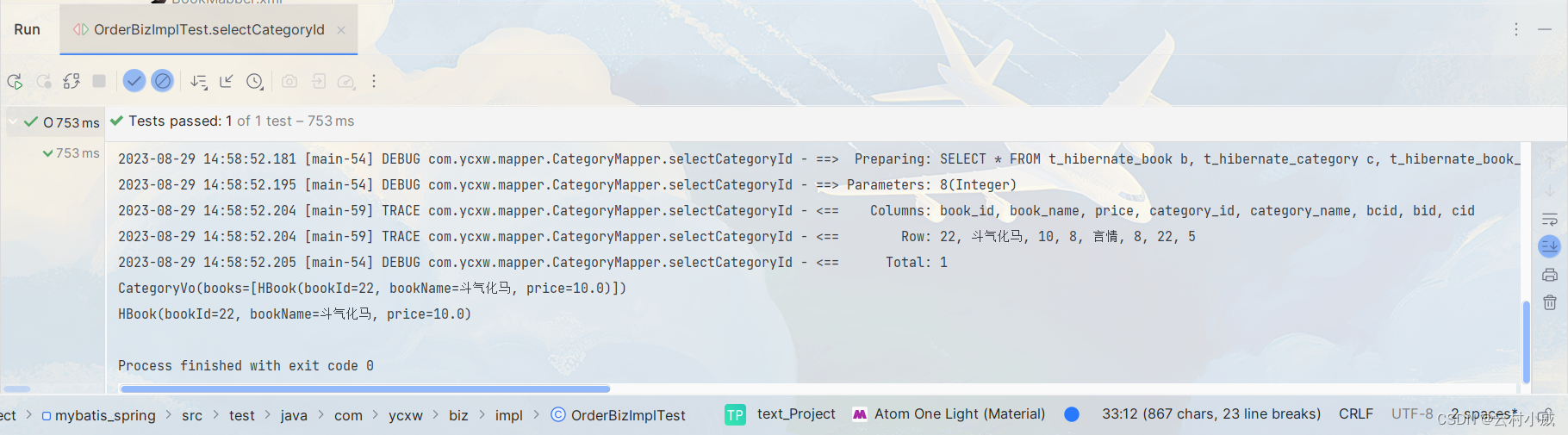 最后实现接口findUserWithAddress方法测试即可,通过以上简单的案例,我相信你已经明白自定义关系映射了。往往实际开发中数据和表是要复杂的多,进阶用法请看以下示例: