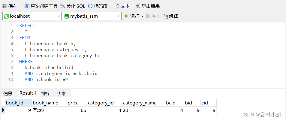 一对一关系使用associationid:id:表示自定义映射的唯一标识 type:查询的数据要映射的实体类的类型 result:设置普通字段的映射关系association设置多对一的映射关系collection property:设置映射关系中实体类中的属性名column:设置映射关系中表中的字段名最后,编写一个查询方法来使用这个 resultMap: