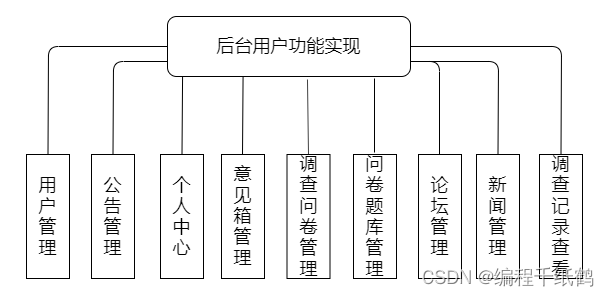 意见箱后台管理用户的主要功能包含有:用户信息管理模块、个人信息管理模块、交流论坛数据管理、意见箱信息管理、调查问卷信息管理、问卷题库管理、问卷记录查看、公告管理、新闻管理等。