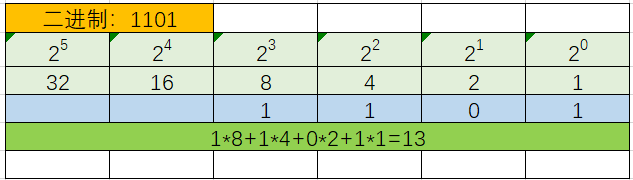 //计算出十进制大小 ,从低位到高位,二进制权值是1,2,4,8