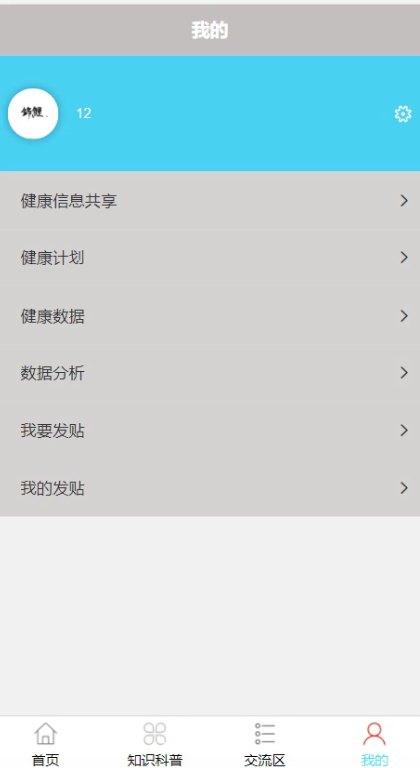 本基于微信小程序的个人健康数据管理系统管理员功能有个人中心,用户管理,知识科普管理,健康信息共享管理,健康计划管理,健康数据管理,数据分析管理,系统管理等。用户功能有个人中心,知识科普,交流区,健康信息共享,健康计划,健康数据,数据分析,我要发贴,我的发帖等。因而具有一定的实用性。