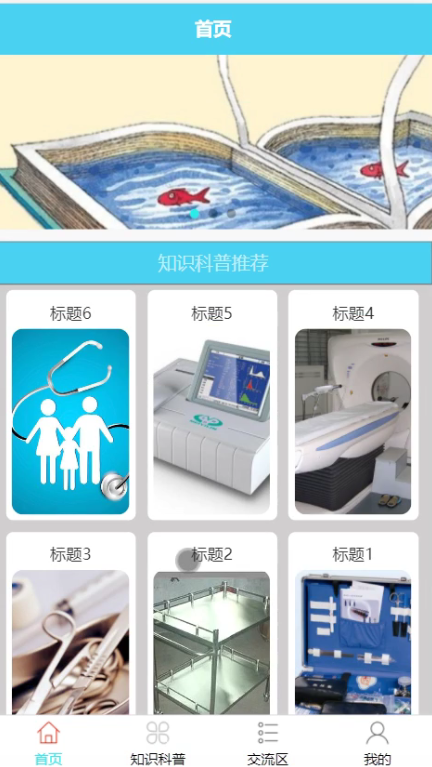 小程序首页会显示知识科普,交流区还有其他信息,通过下滑就可以获取到。界面如下图所示: