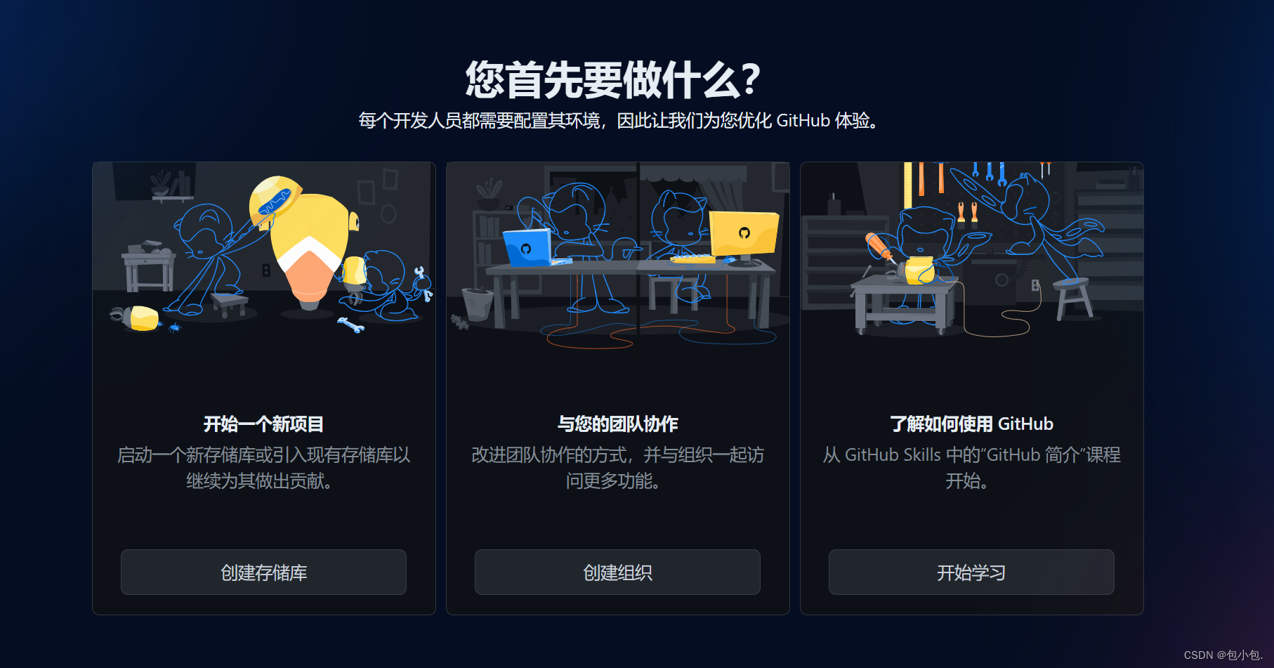 完成这个过程,就可以获得一个免费的、可扩展的代码托管平台,可以与其他人共享代码、协作开发和管理版本控制。输入验证码后自动跳转到这个页面(ps:此页面是翻译成中文了)需要的话就点击相应按钮,也可以点击直接跳过(这里忘截出来了,就在这个画面下面一点点)1.2 用户名不能和已有名称重复,假如用户名重复会给出名称重复的提示并且给出若干可用的用户名进行选择。1.1 用户名不能使用中文,只能包含字母、数字字符