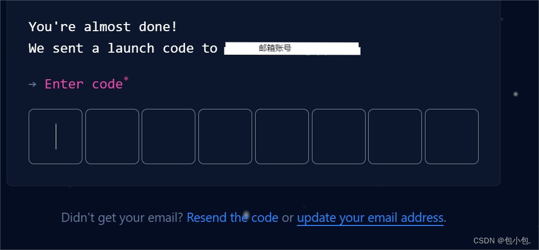 最后点击Create account 跳转到邮箱验证码