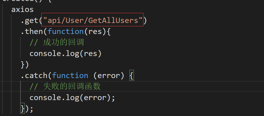 axios.get('/user') .then(response => { console.log(response.data) }) .catch(error => { console.log(error) }) -
