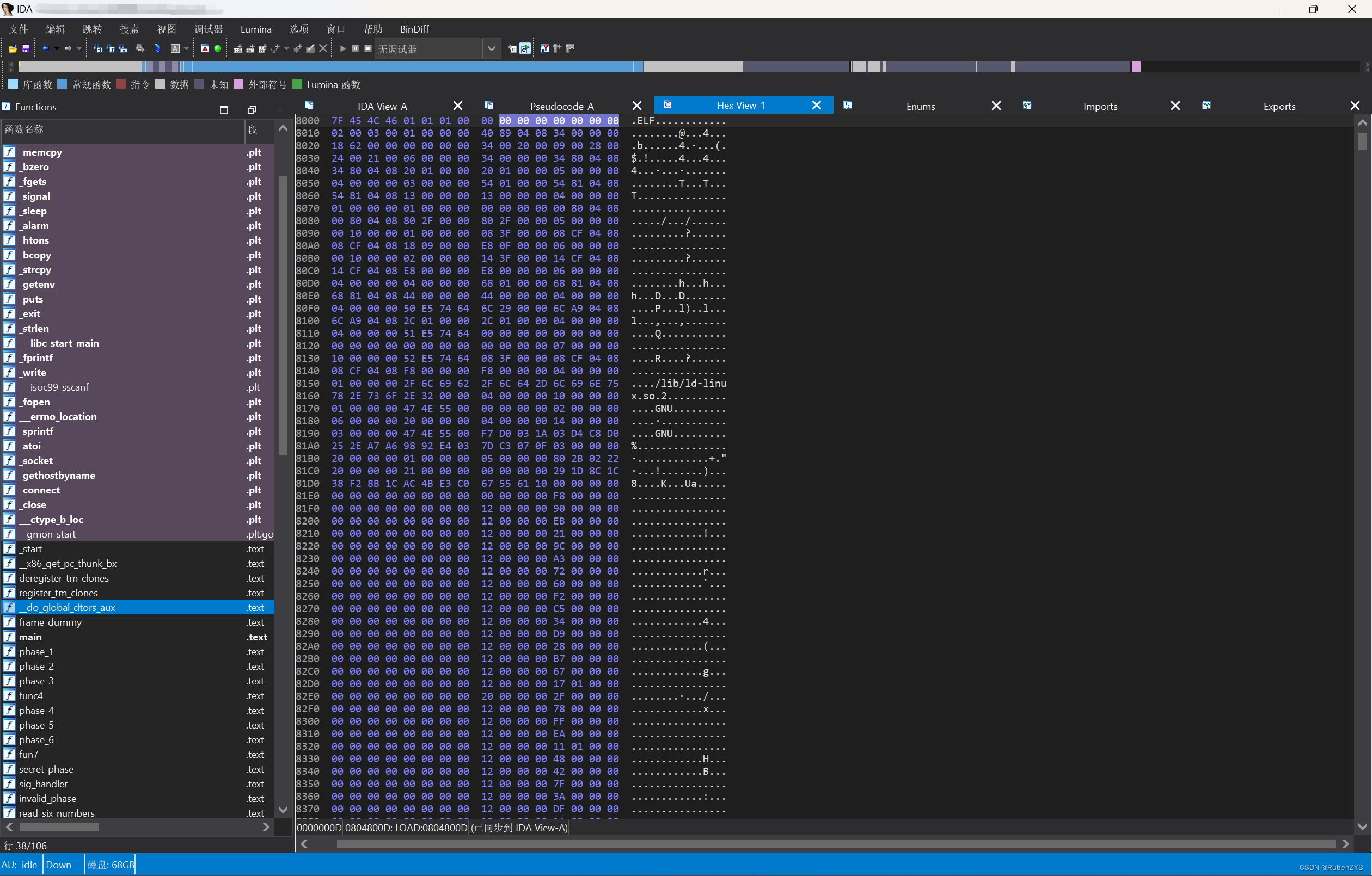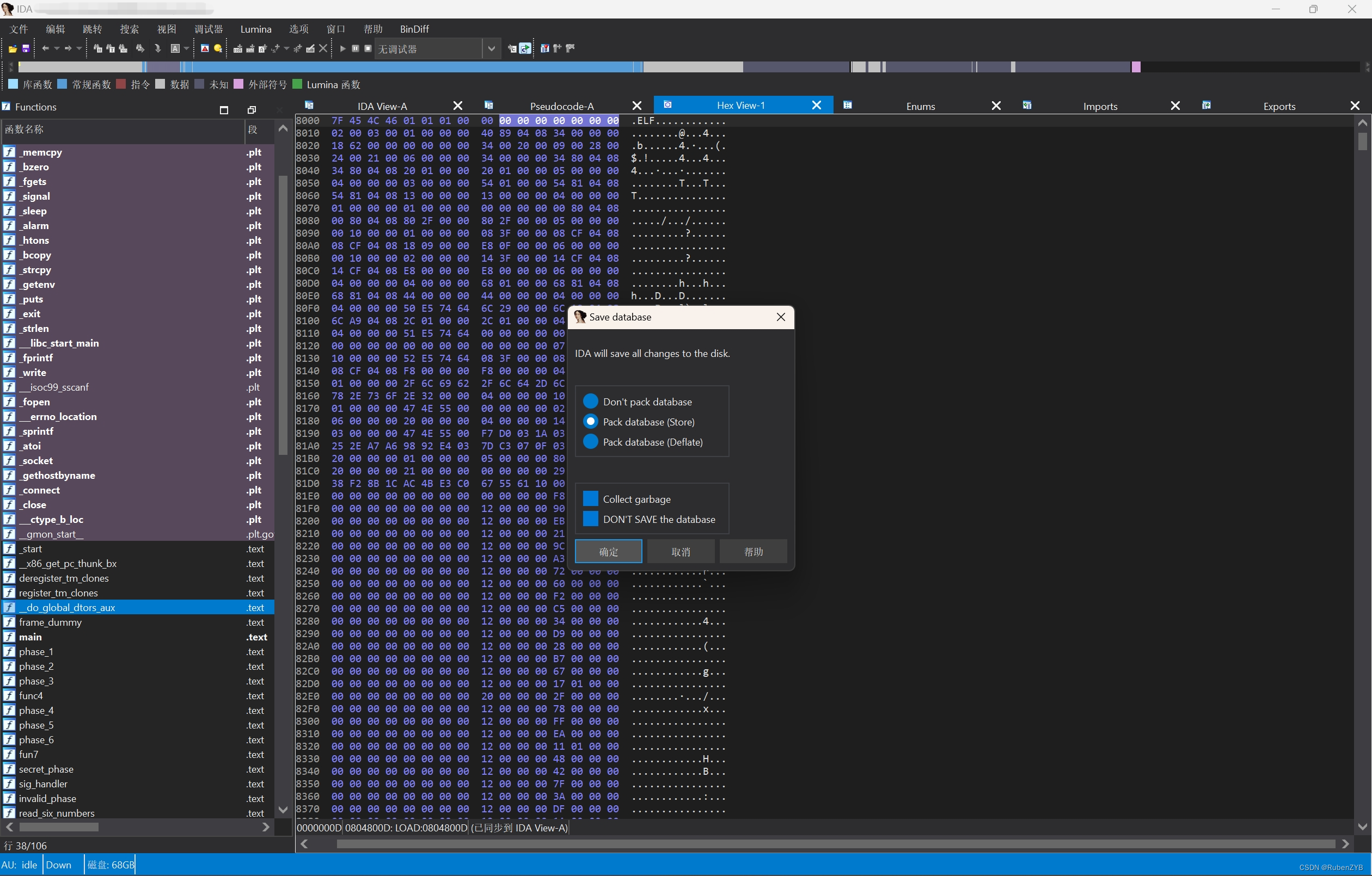我下载的IDA是运行在Windows系统上的。用IDA打开原本需要反汇编的Linux系统可执行文件(我