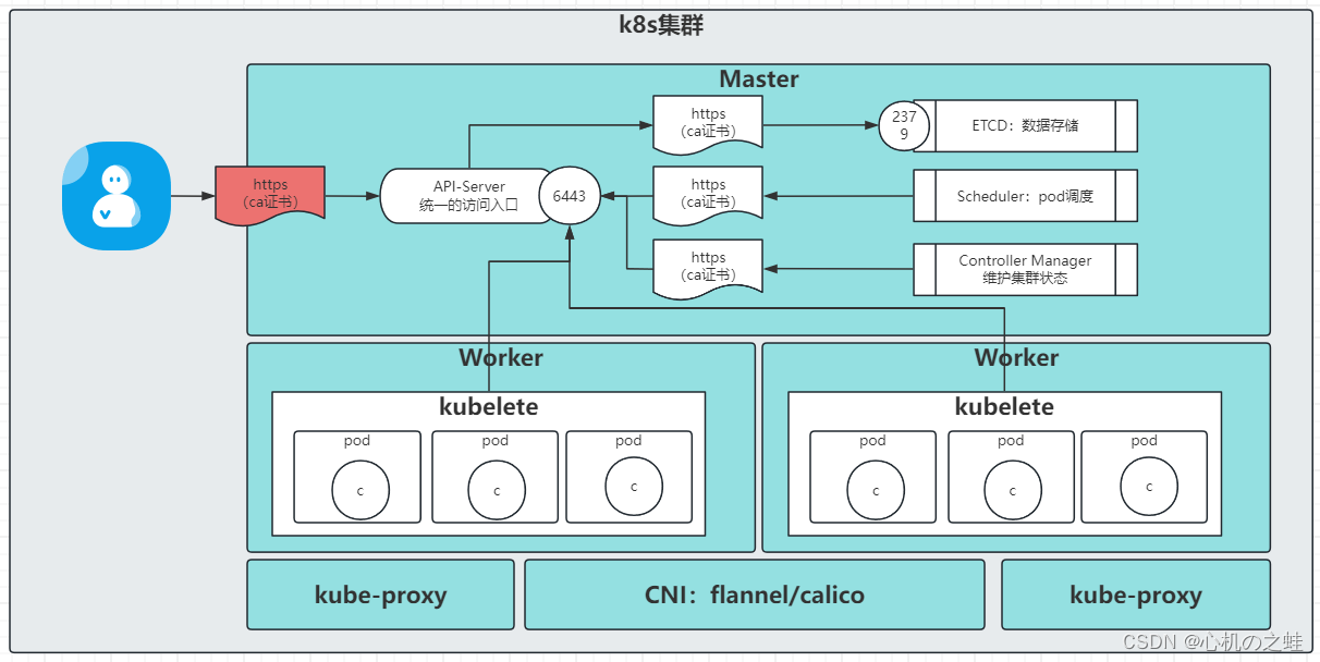 我们通过k8s各组件架构,知道各个组件之间是使用https进行数据加密及交互的,那么同理,我们作为“使用”k8s的各种资源的使用者,也是通过https进行数据加密的;