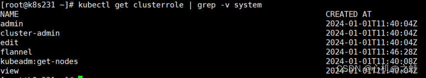 [root@k8s231 ~]# kubectl get clusterrole | grep -v system