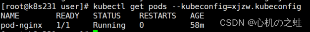 [root@k8s231 user]# kubectl get pods --kubeconfig=xjzw.kubeconfig