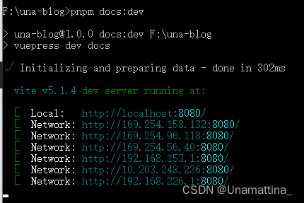 VuePress 会在http://localhost:8080 启动一个热重载的开发服务器。当你修改你的 Markdown 文件时,浏览器中的内容也会自动更新。