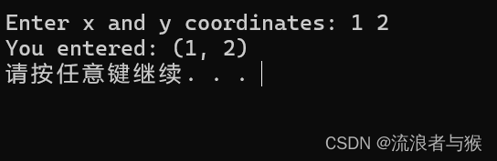 operator<<被重载为非成员函数,用于将Point对象的坐标输出到输出流中;operator>>也被重载为非成员函数,用于从输入流中读取坐标并存储到Point对象中。在main()函数中,程序首先提示用户输入坐标,然后使用operator>>运算符将读取到的坐标存储到Point对象p中,最后使用operator<<运算符将p对象的值输出到屏幕上。