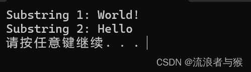 cout << "Substring 2: " << sub2 << endl;