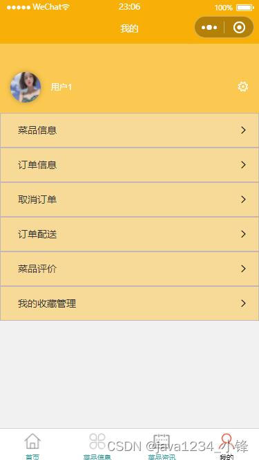 本微信小程序在线订餐系统管理员功能可以修改个人中心,用户管理,菜品分类管理,菜品信息管理,订单信息管理,取消订单管理,订单配送管理,菜品评价管理以及系统管理。微信小程序用户可以注册以及登录,登录之后可以可以查看菜品信息,可以对菜品信息进行收藏以及订购,还可以查看菜品资讯,可以对已经生成的订单信息进行取消操作,查看订单配送情况,以及查看菜品评价,我的收藏等。因而具有一定的实用性。本站后台采用Java的SSM框架进行后台管理开发,可以在浏览器上登录进行后台数据方面的管理,MySQL作为本地数据库,微信小程序用到了微信开发者工具,充分保证系统的稳定性。系统具有界面清晰、操作简单,功能齐全的特点,使得微信小程序在线订餐系统管理工作系统化、规范化。