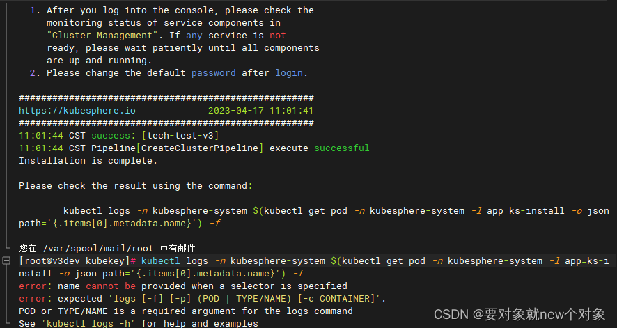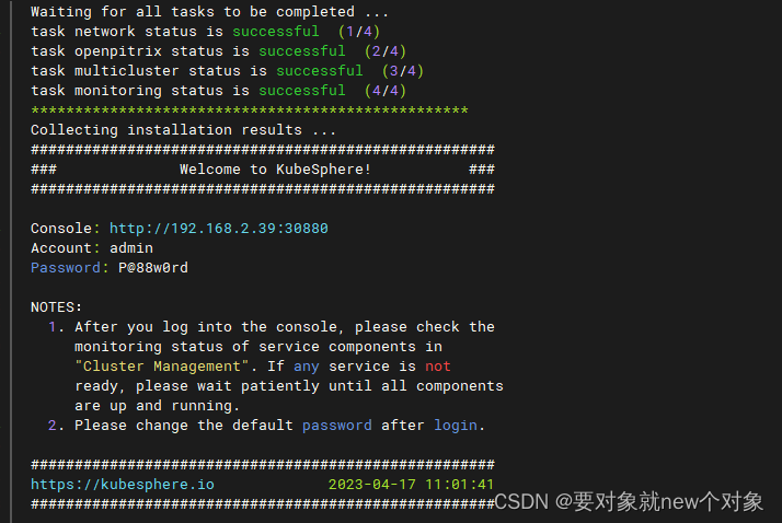 注意:安装时候k8s和kubesphere相互之间有版本依赖要求,必须是匹配的版本才能正常执行。